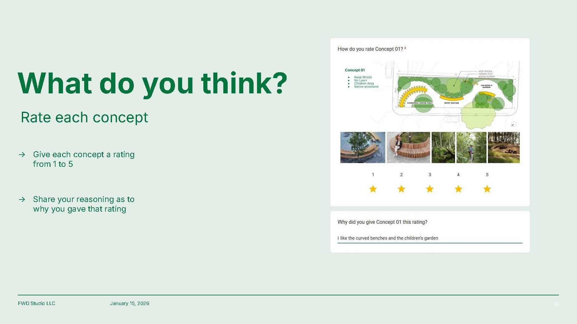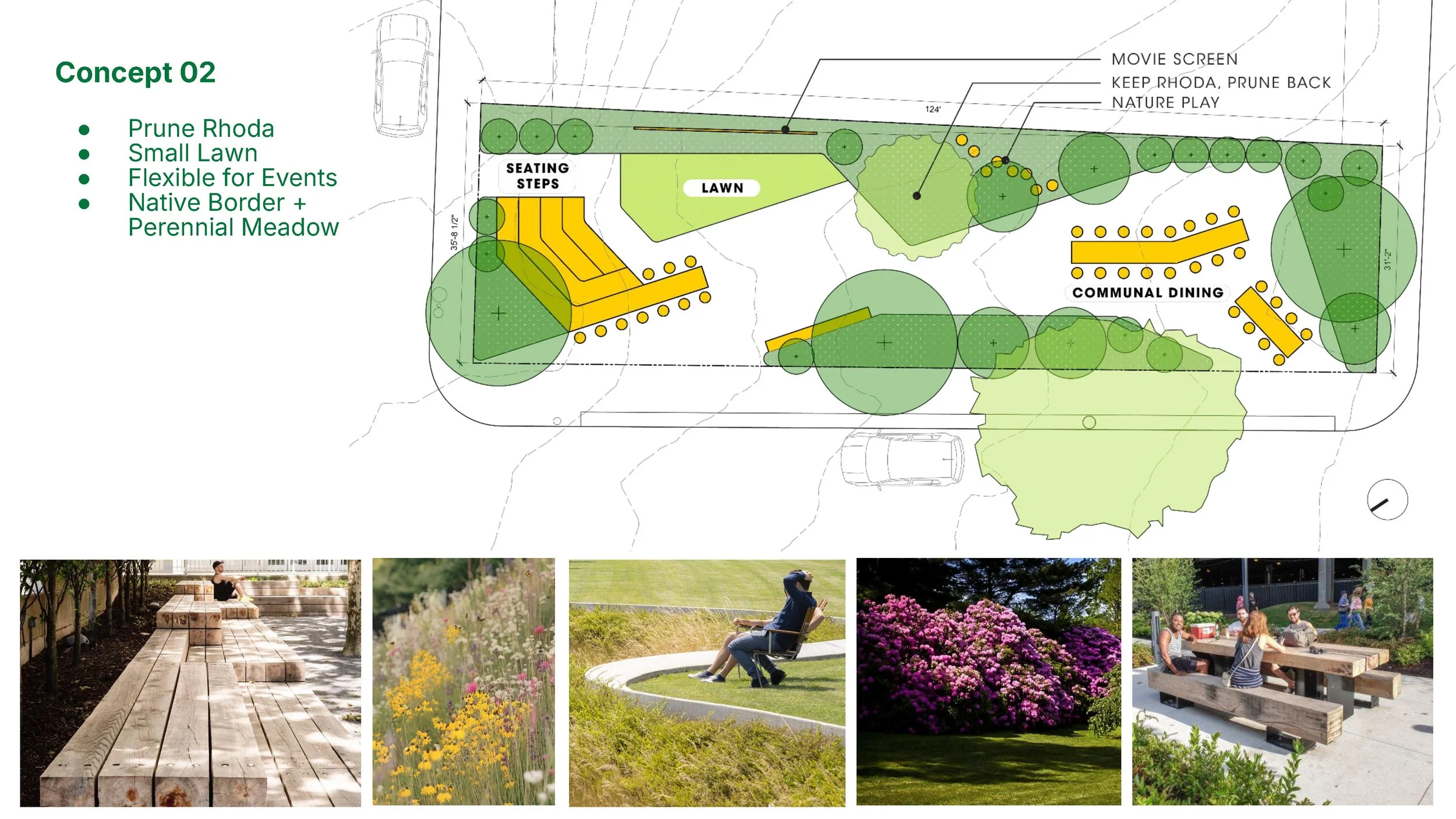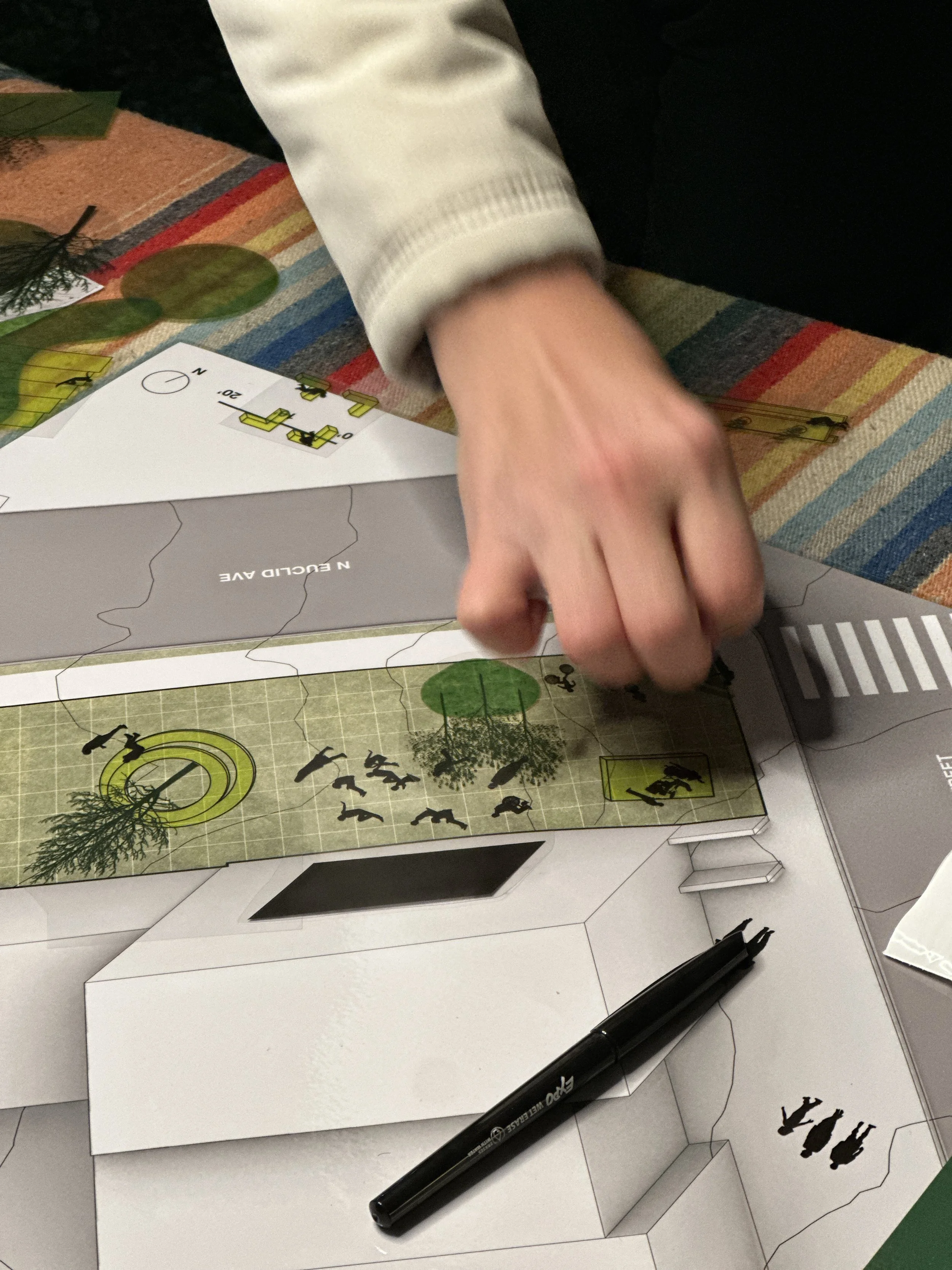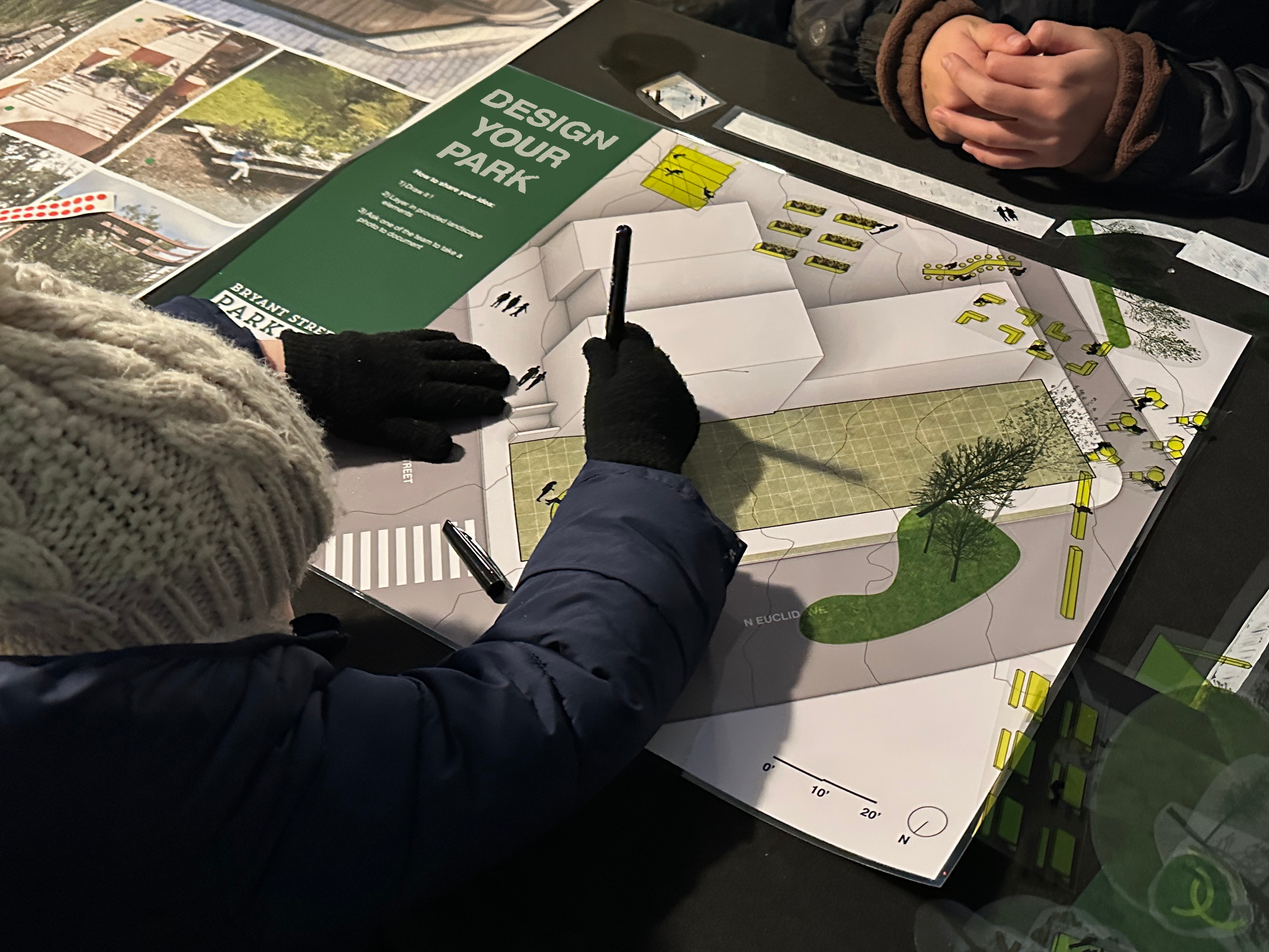 The first phase of the project engages the community in co-design to determine the program, planting, and overall approach for the parklet redesign. The team used surveys, event tabling, and a hands-on design activity that asked neighbors to design the parklet. These responses informed 3 designs that show what is possible in the parklet. The next phase of the project will be to narrow down to a single option based on feedback from the community.
