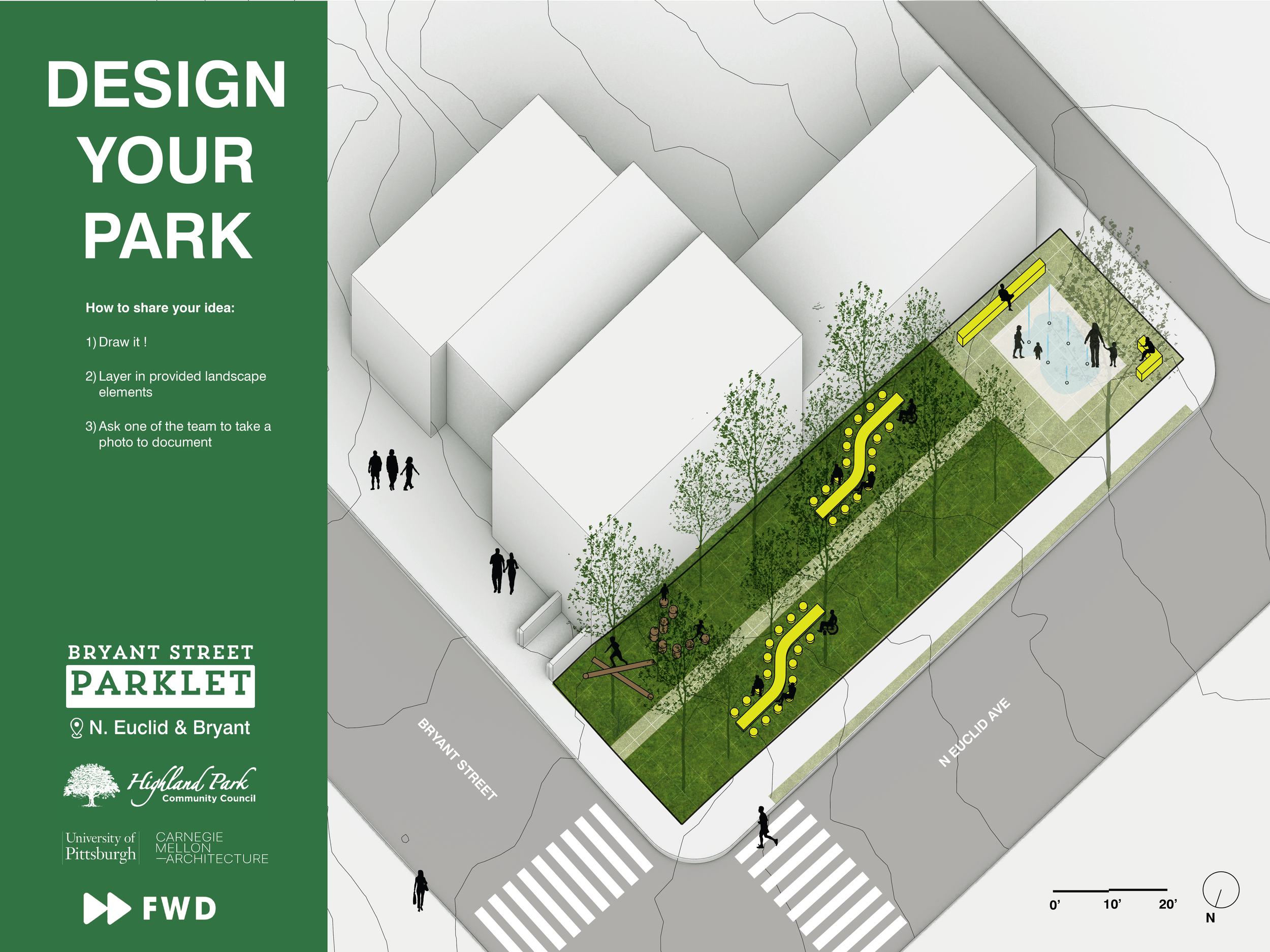 The Highland Park Community Council, the oldest non-profit neighborhood organization in Pittsburgh purchased the Bryant Street Parklet parcel with the intention of building a legacy park for the commercial district along Bryant Street. The Council was interested in revitalizing the space to serve the community for the next generations.